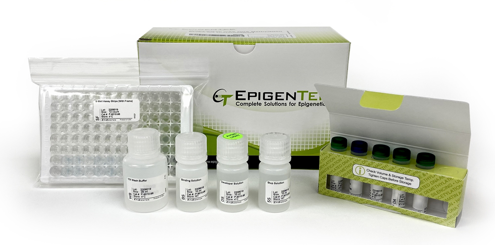 The MethylFlash™ m6A DNA Methylation ELISA Kit (Colorimetric) is a complete set of optimized buffers and reagents to colorimetrically quantify N6-methyladenosine (m6A or 6mA) in DNA. The kit is suitable for directly detecting m6A DNA methylation status using DNA isolated from any species such as mammals, plants, fungi, bacteria, and viruses. The kit has the following advantages and features: