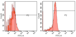 Fig. 2. Flow cytometry analysis of U251 cells using Mn SOD Polyclonal Antibody (right) and control rabbit IgG (left).