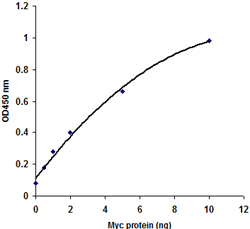 Fig. 2. Standard curve generated with recombinant human MYC protein by ELISA. MYC protein is bound to glutathione plate and detected with anti-MYC antibody followed by secondary antibody-HRP reaction.