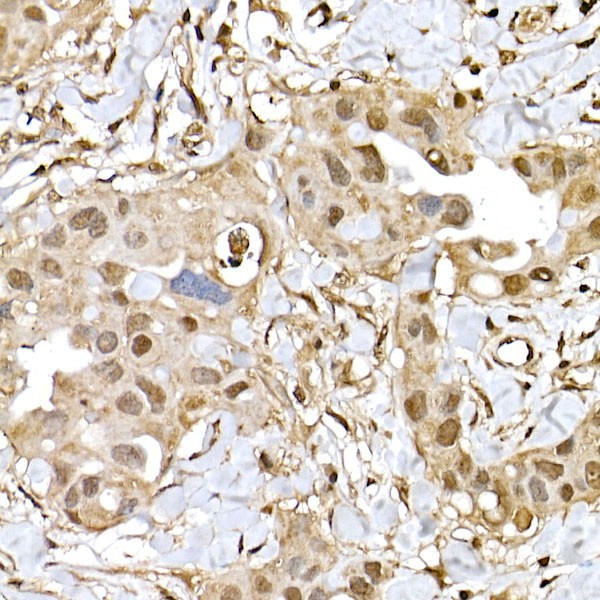 ApplicationWB, IHC, IF, ELISA; Recommended dilution: WB: 1:500-1:1000, IHC: 1:50-1:200, IF:1:50-1:200, ELISA - recommended starting concentration is 1 μg/mL. Please optimize the concentration based on your specific assay requirements.