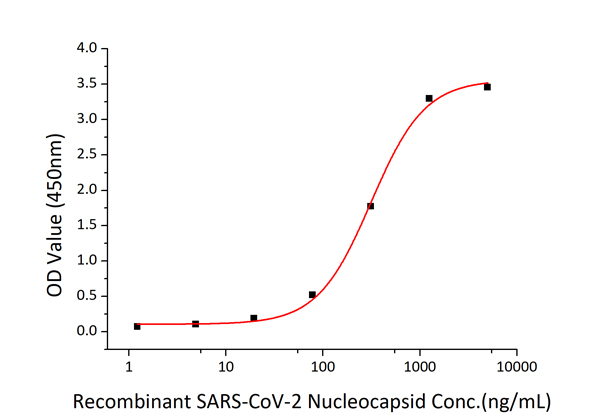 Bio-Activity Measured by its binding ability in a functional ELISA. Immobilized Recombinant SARS-COV-2 Nucleocapsid at 2ug/mL (100 uL/well) can bind Anti-Nucleocapsid antibody with a linear range of 0.12-1.64 ng/mL. Measured by its binding ability in a functional ELISA. Immobilized Recombinant SARS-CoV-2 envelope Protein at 2ug/mL (100 uL/well) can bind Recombinant SARS-CoV-2 Nucleocapsid protein, the EC50 of Recombinant SARS-CoV-2 Nucleocapsid protein is 41.10 ng/mL.