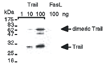 Fig. 1. Detection of recombinant human TRAIL but not of recombinant human FasL